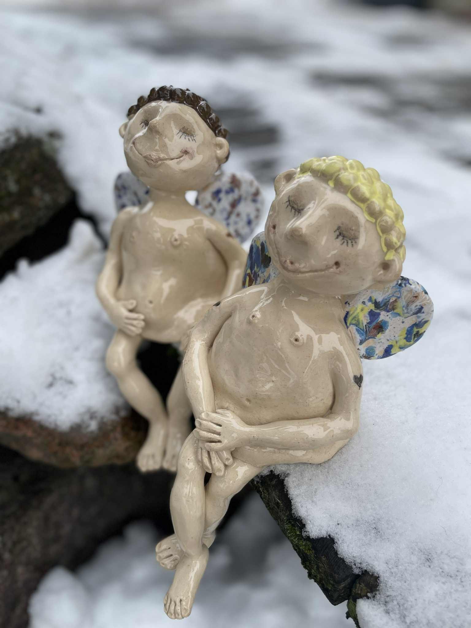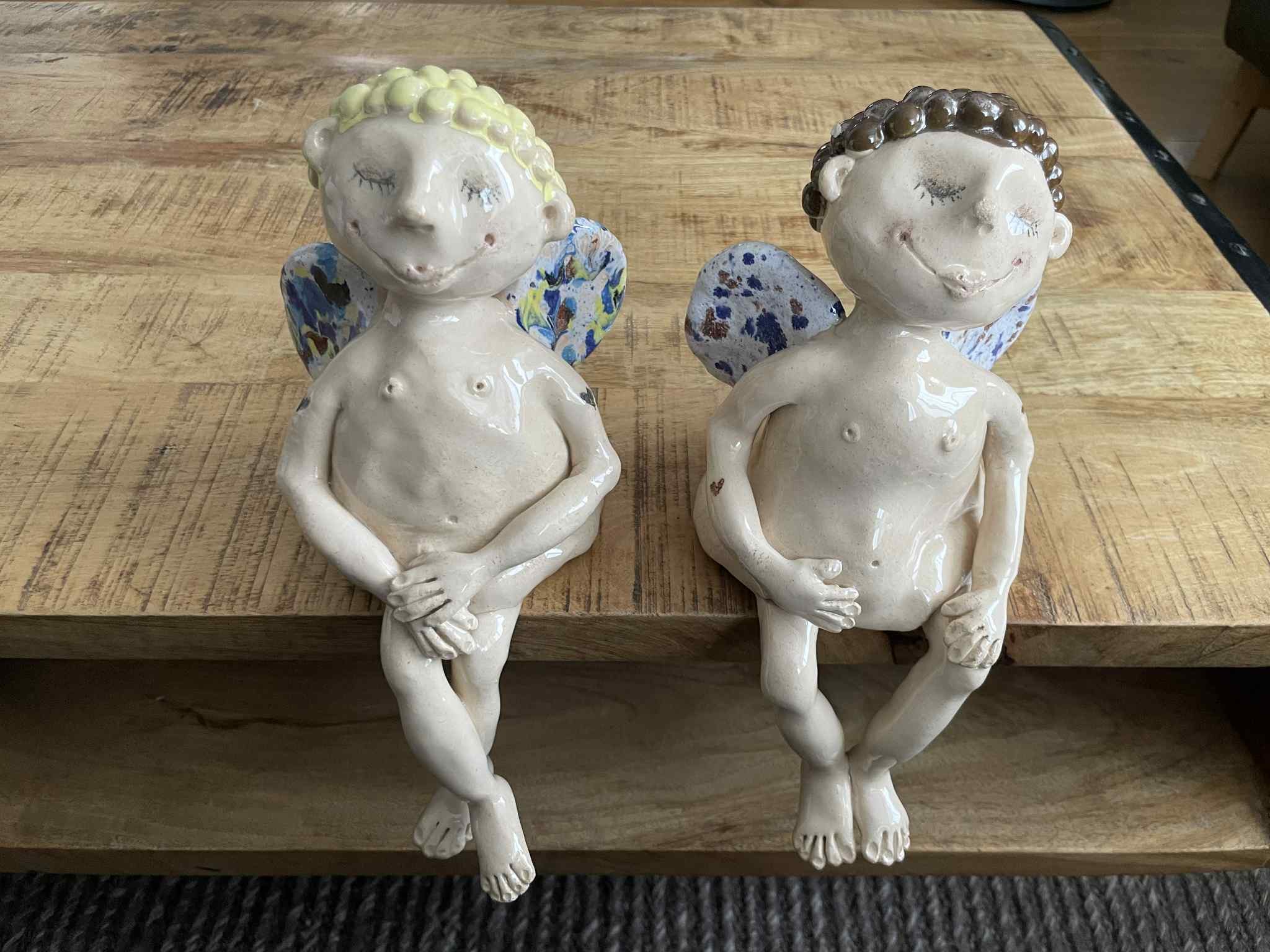 Rankų darbo keramikinis skulptūrinis angelas. Žavus ir ypatingai mielas meno kūrinys interjerui.