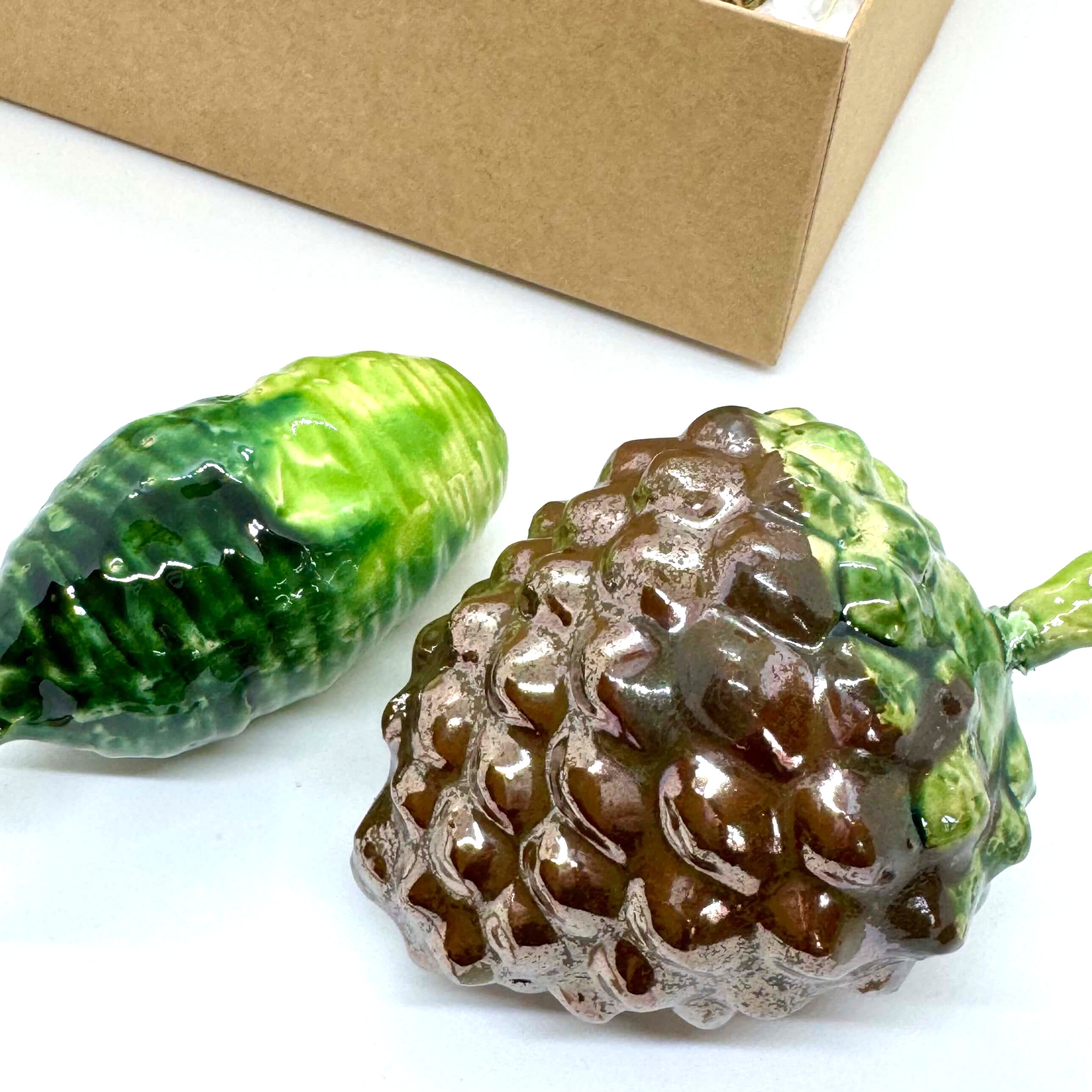Keramikiniai kankorėžiai – dekoracijos, kuriais papuošite kalėdinį kėnį, eglutę ar sodybos interjerą.