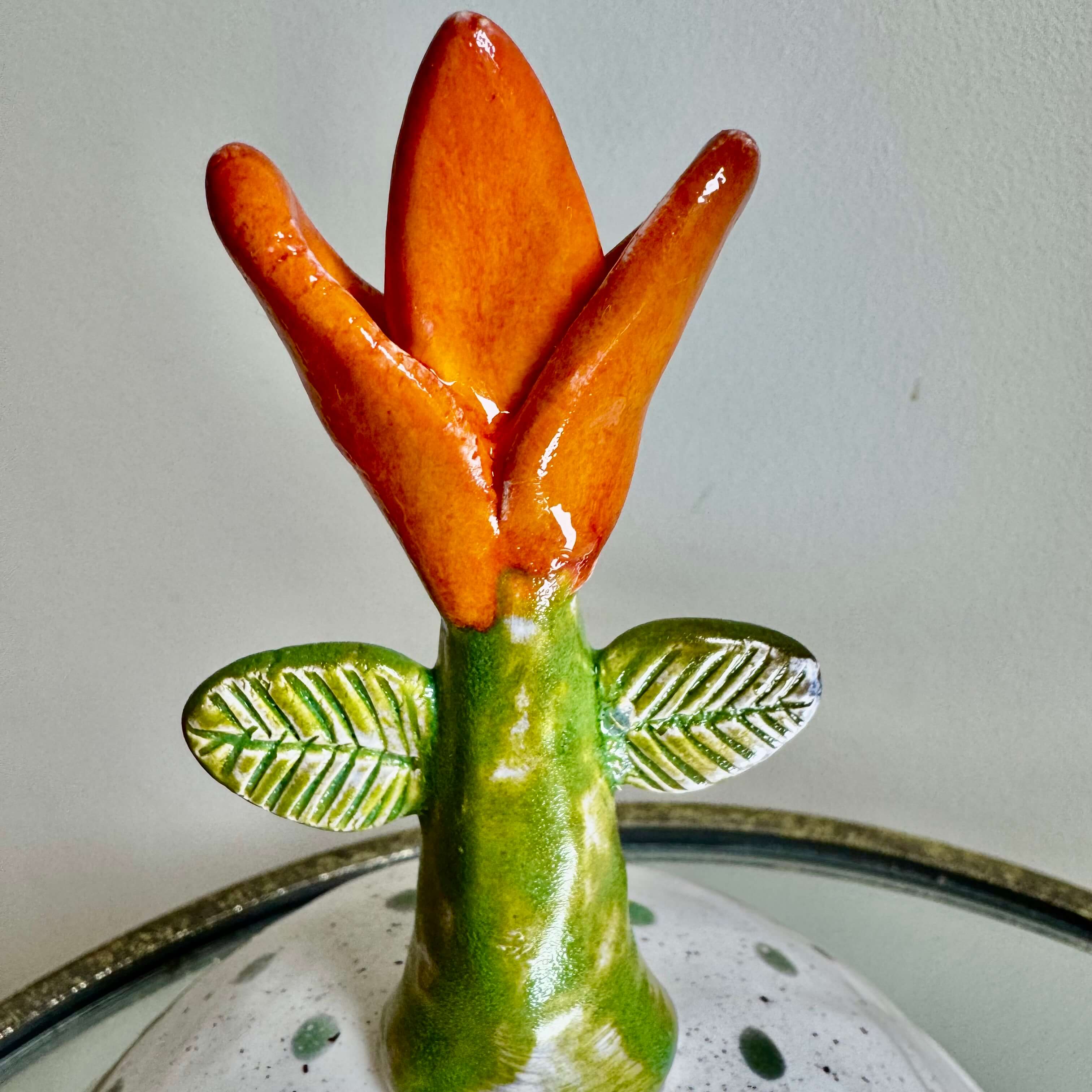 Sviestinės lėkštutės skersmuo – 18 cm, aukštis su tulpe – 18 cm (be gėlės – 9 cm).