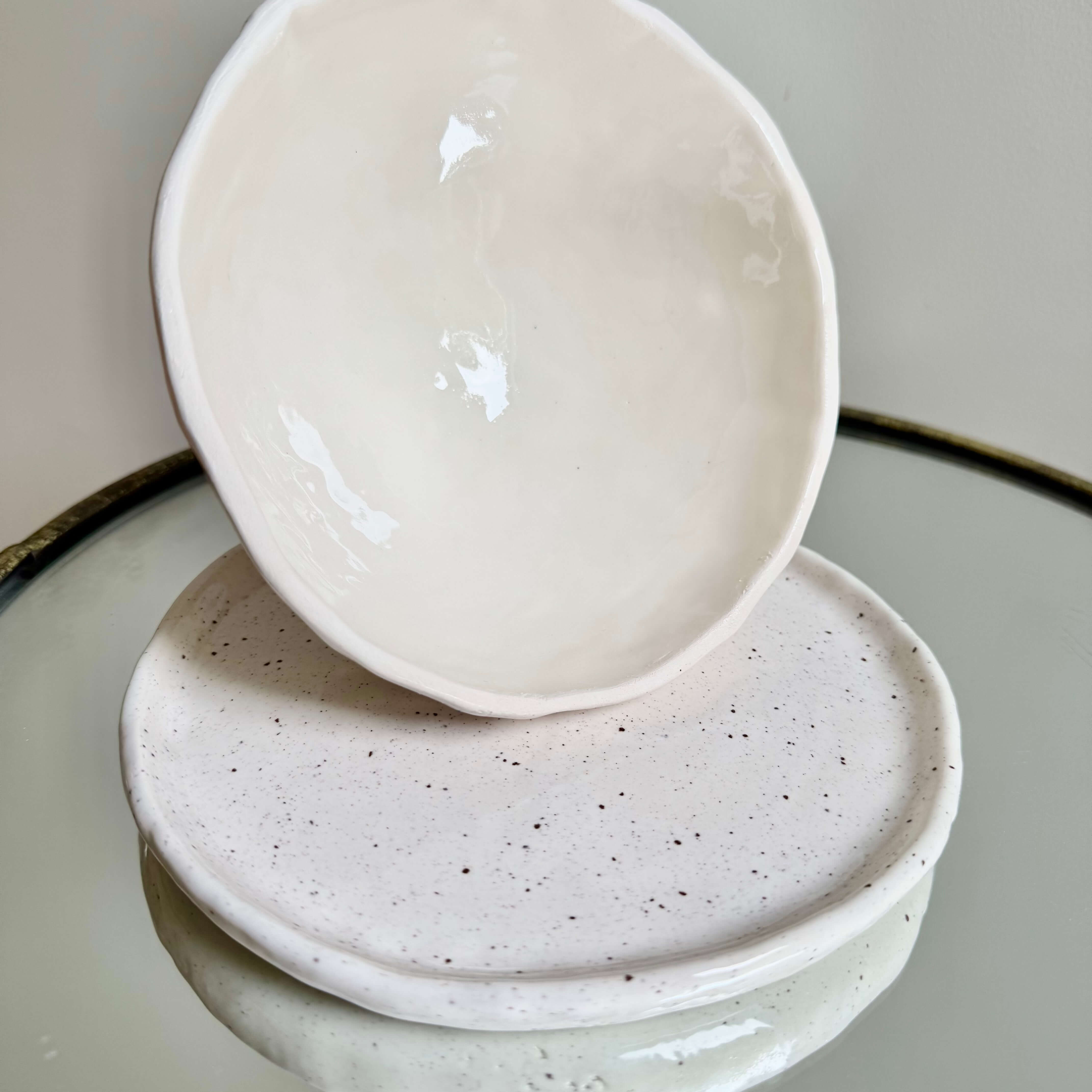 Baltojo molio rankų darbo gaminys.