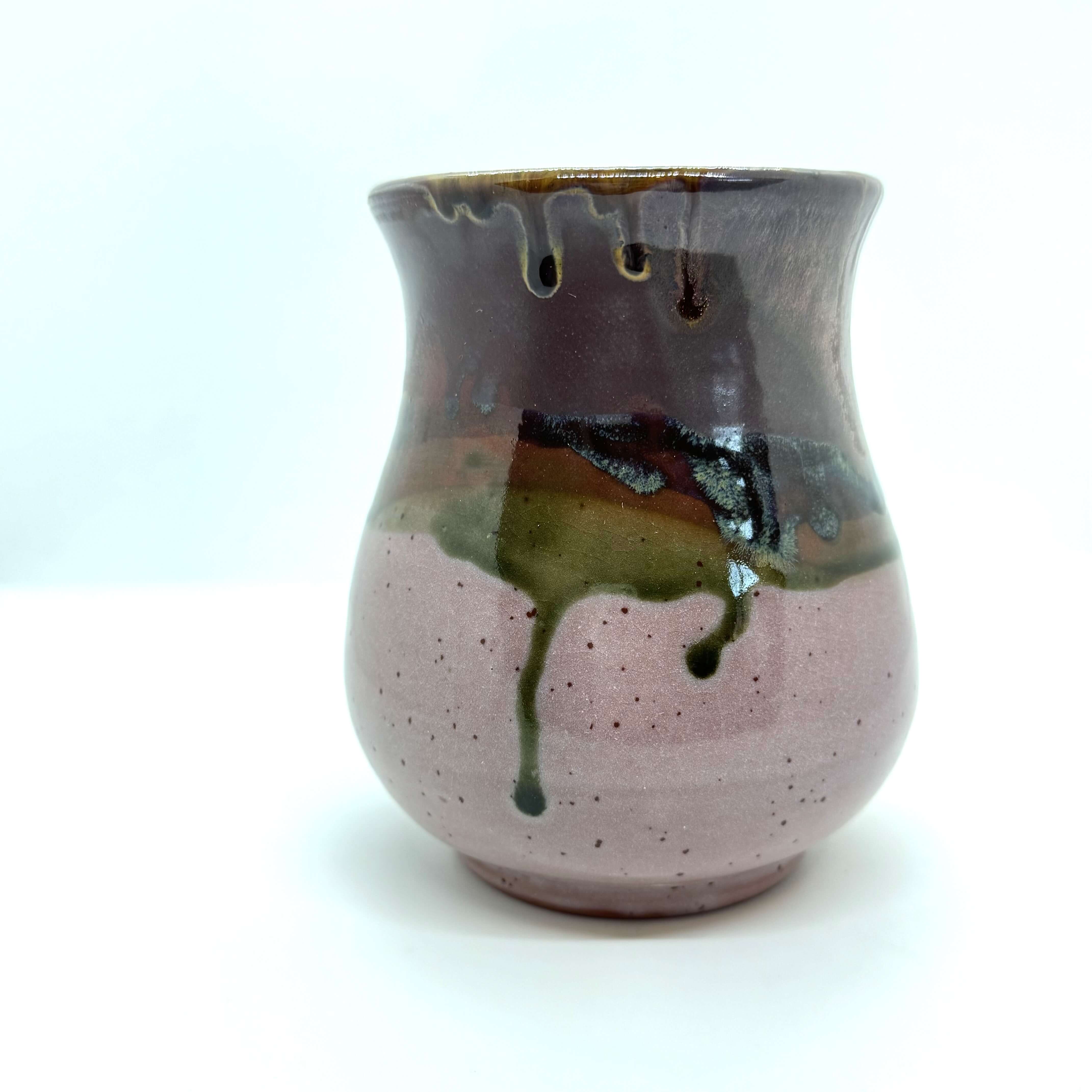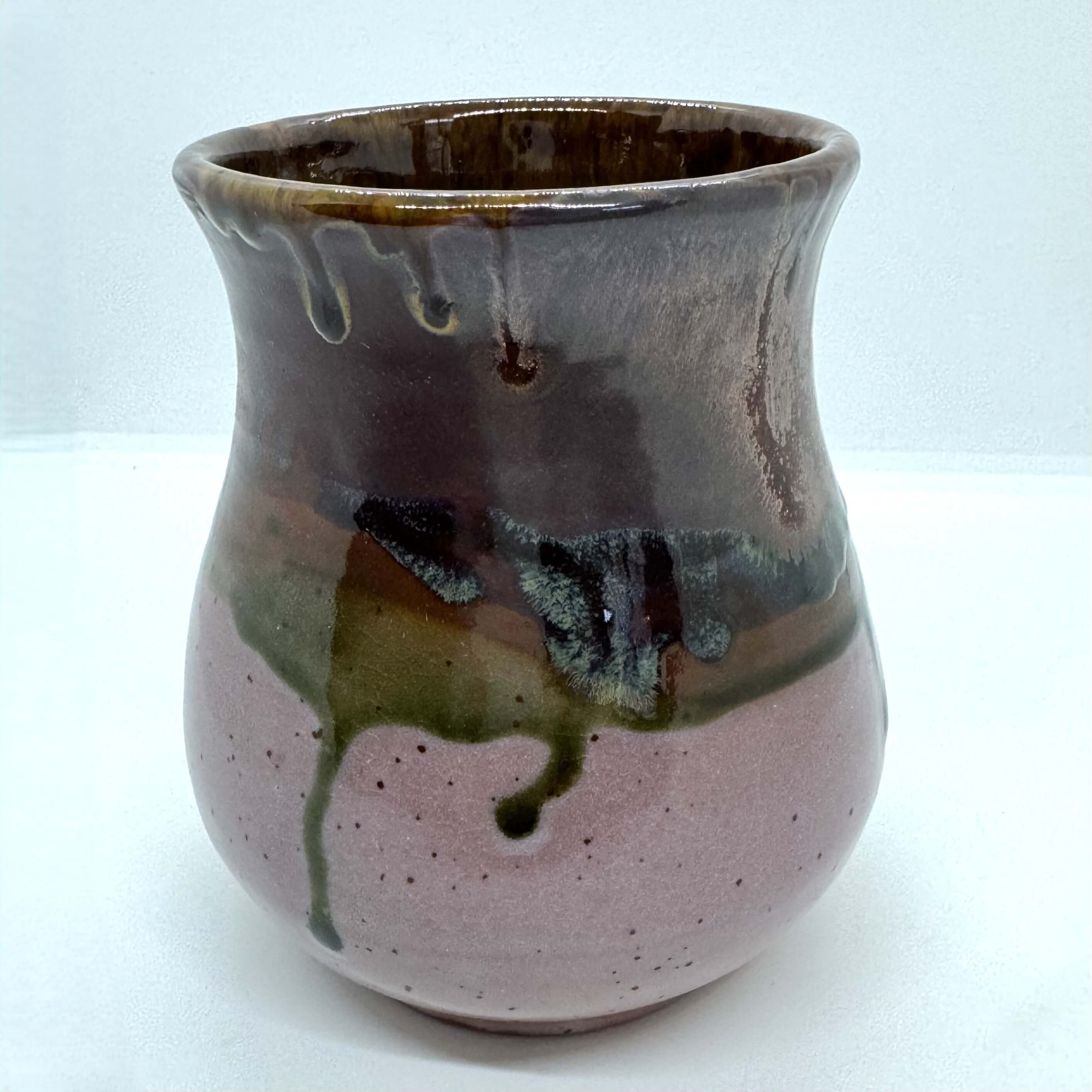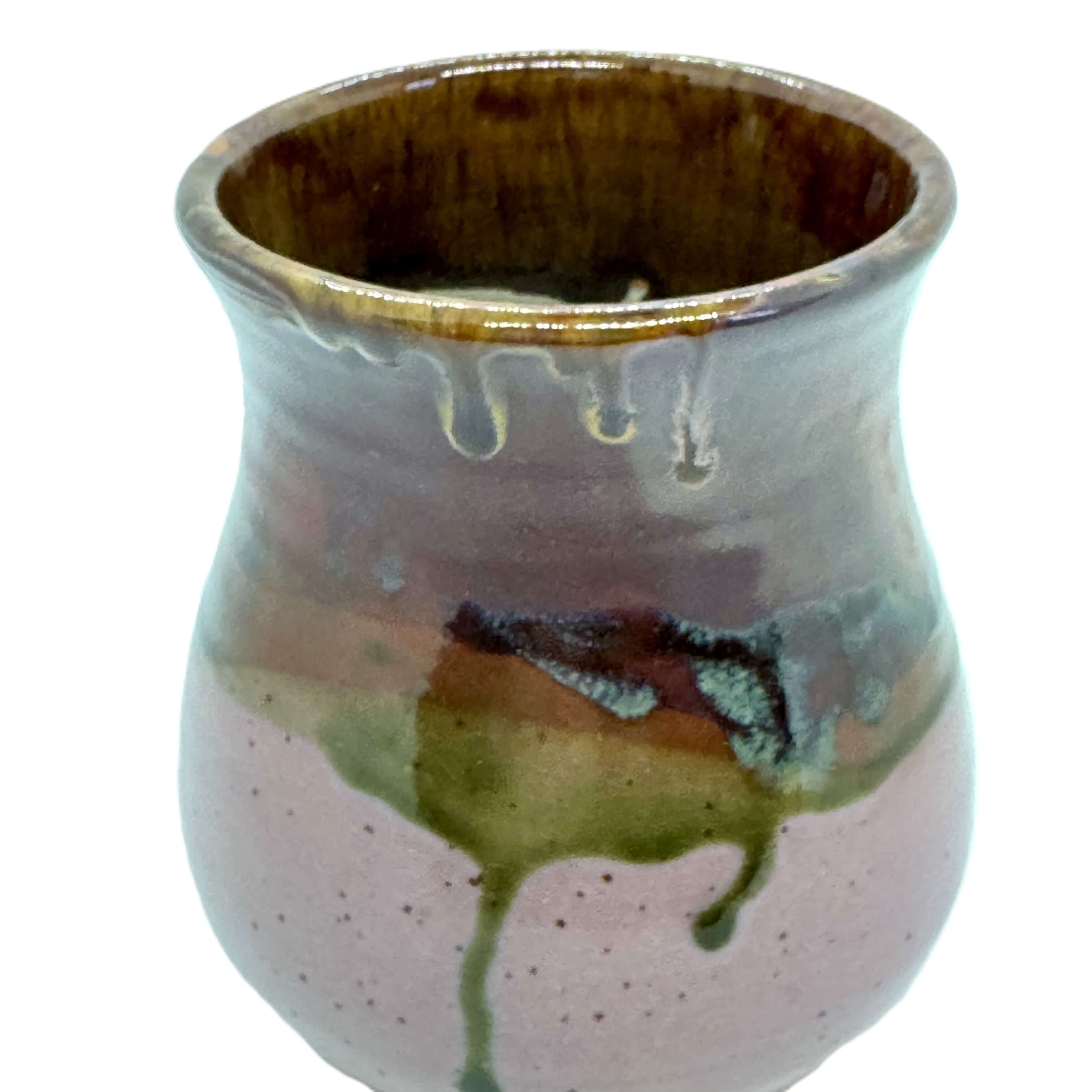 Keramikinė žiesta rankų darbo vaza. Puošta sodria žemės spalvų glazūra.Vazos aukštis – 16 cm.Puikiai tiks platesnėms lauko gėlių puokštelėms arba gali puikuotis ant darbo stalo kaip prabangi pieštukinė.