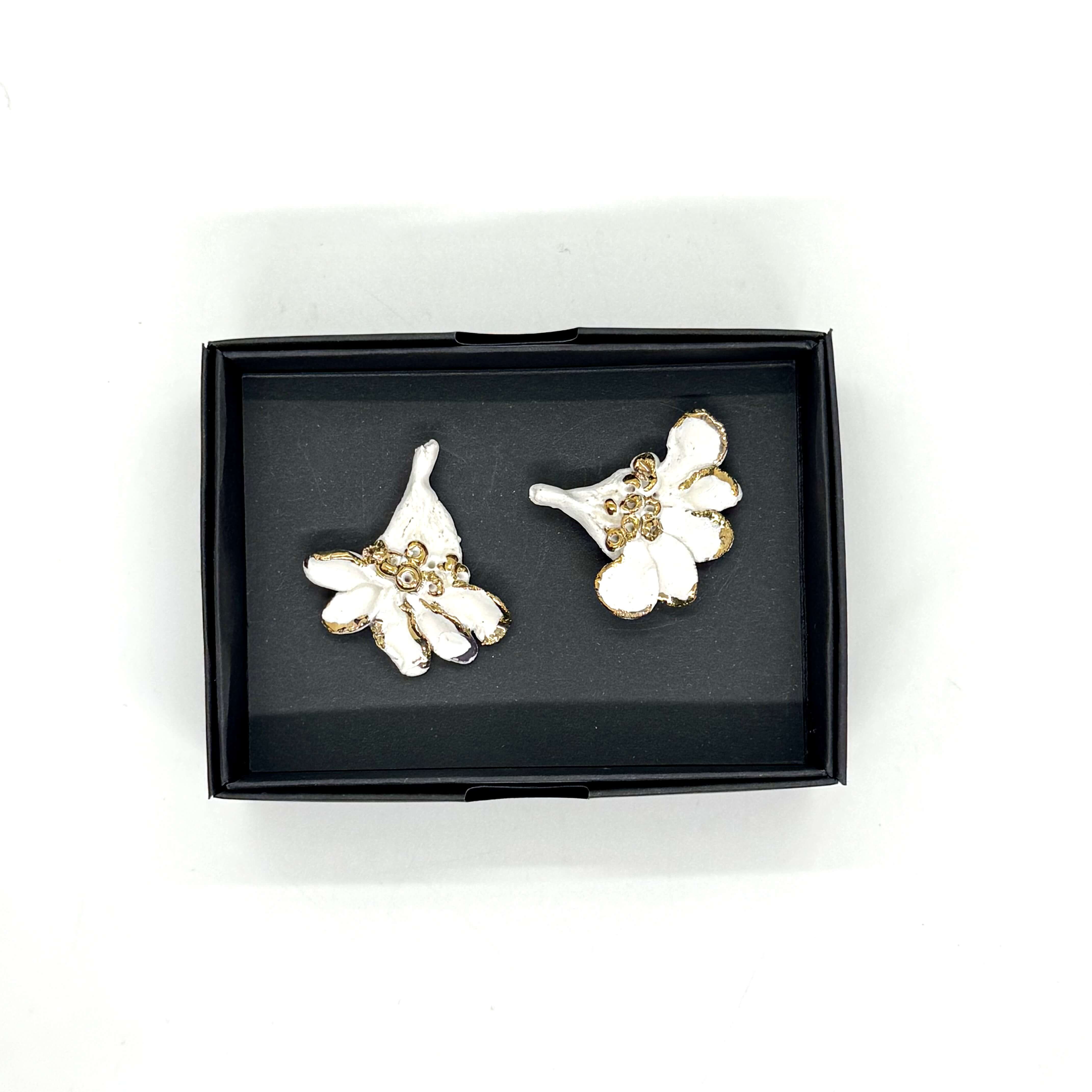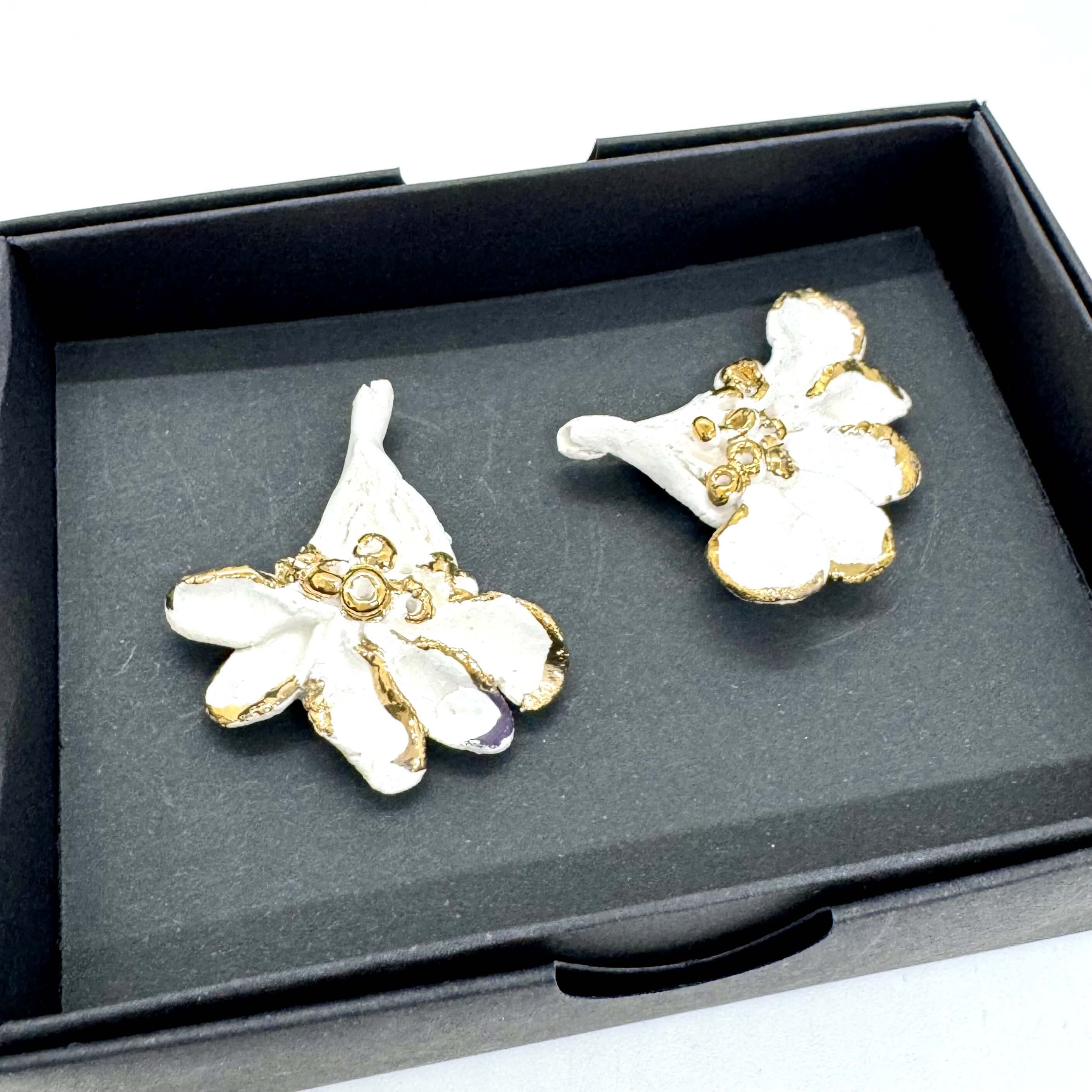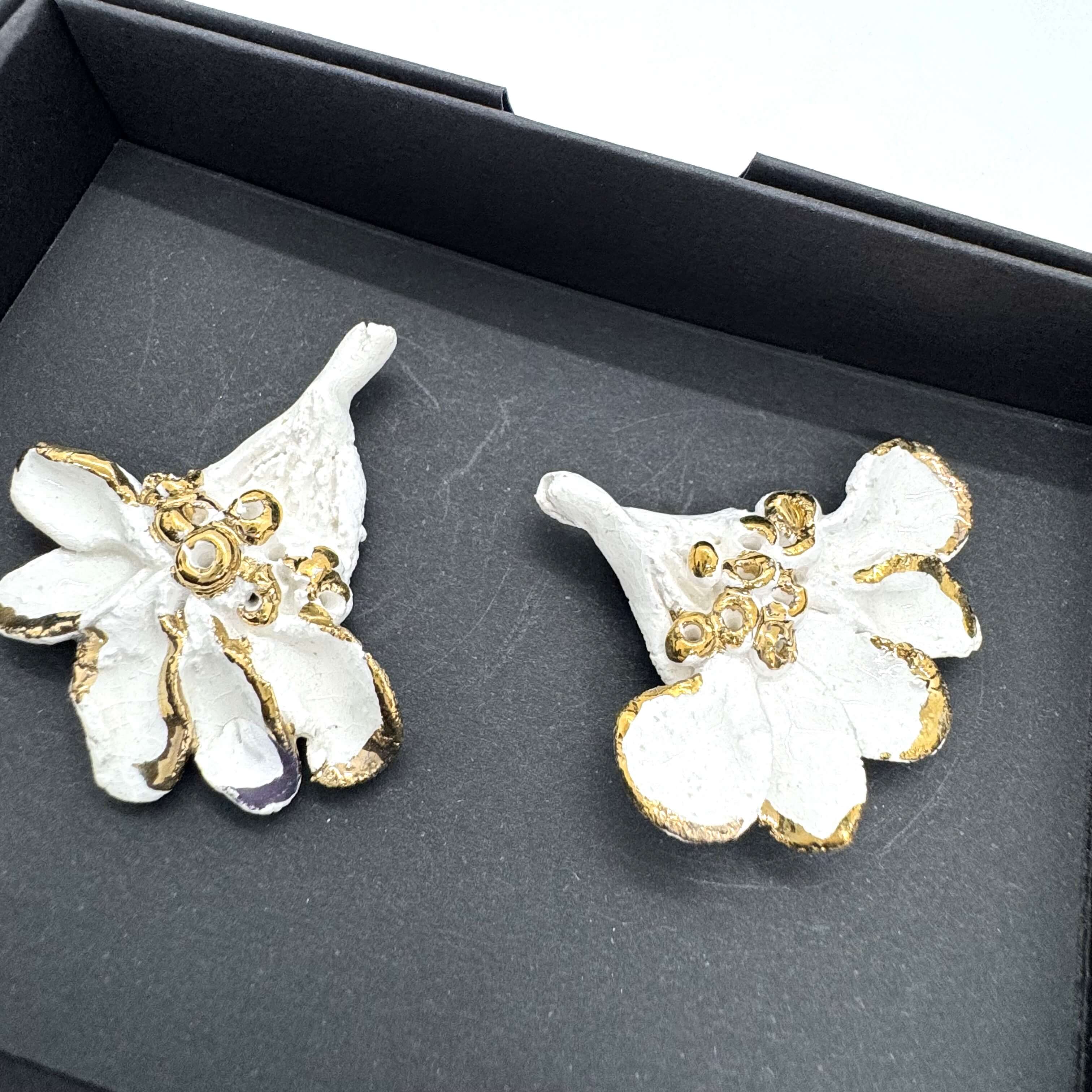 Žavūs porcelianiniai auskarai. Autorinis vienetinis gaminys.Papuošti aukso liustra.Užsegimas – medicininio metalo.