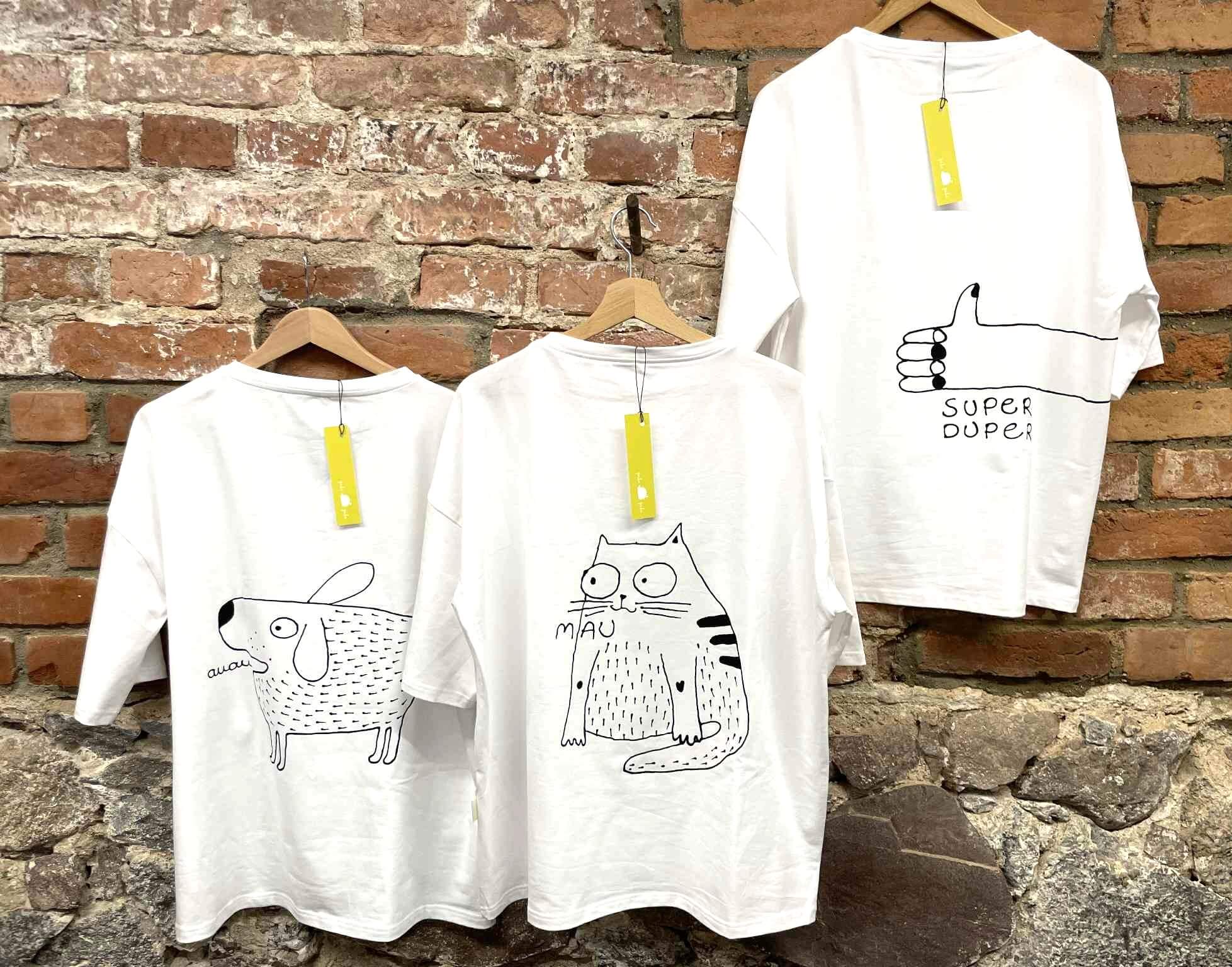 Oversize stiliaus marškinėliai su autoriniu piešiniu ant nugaros AU AU.