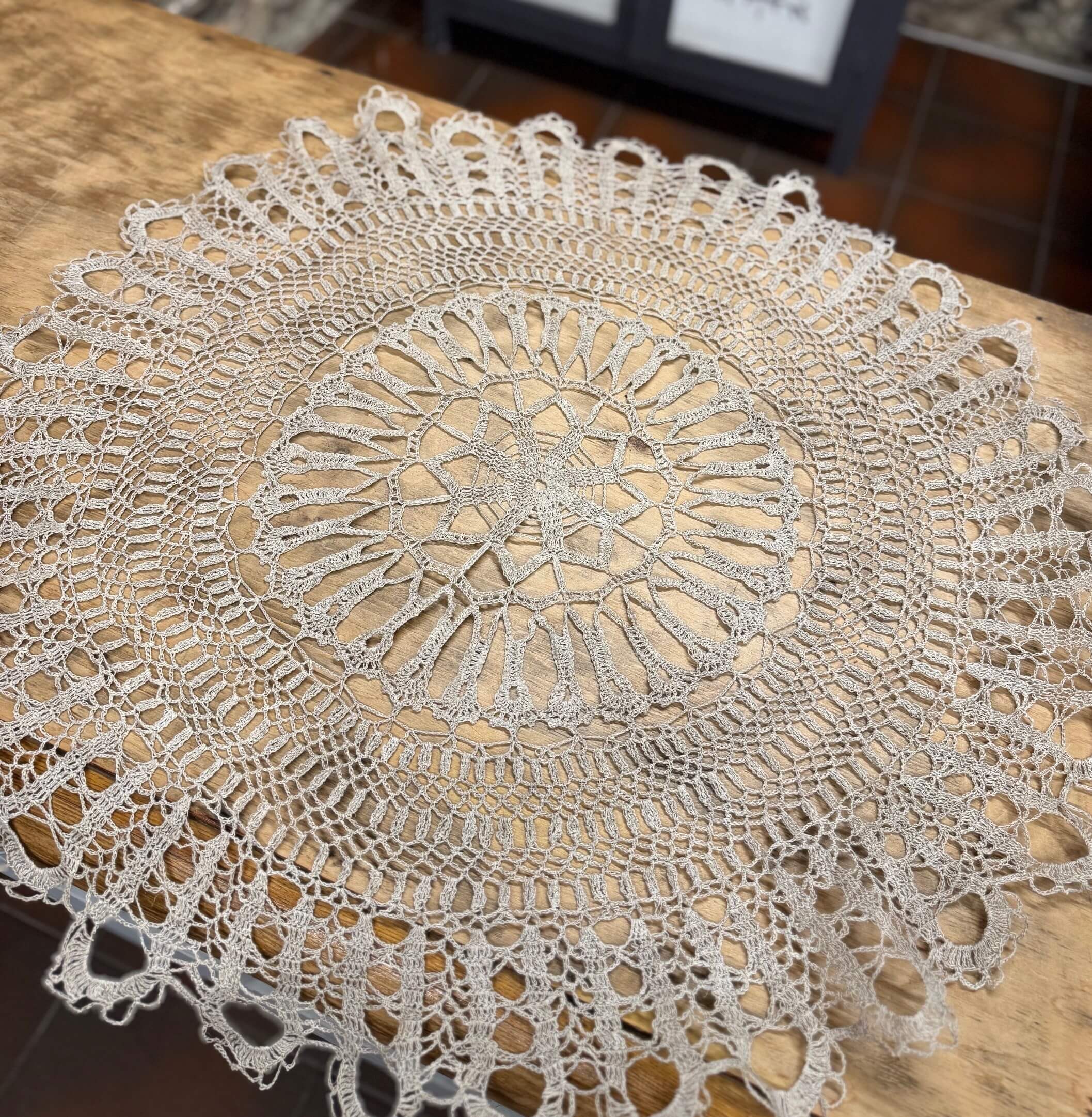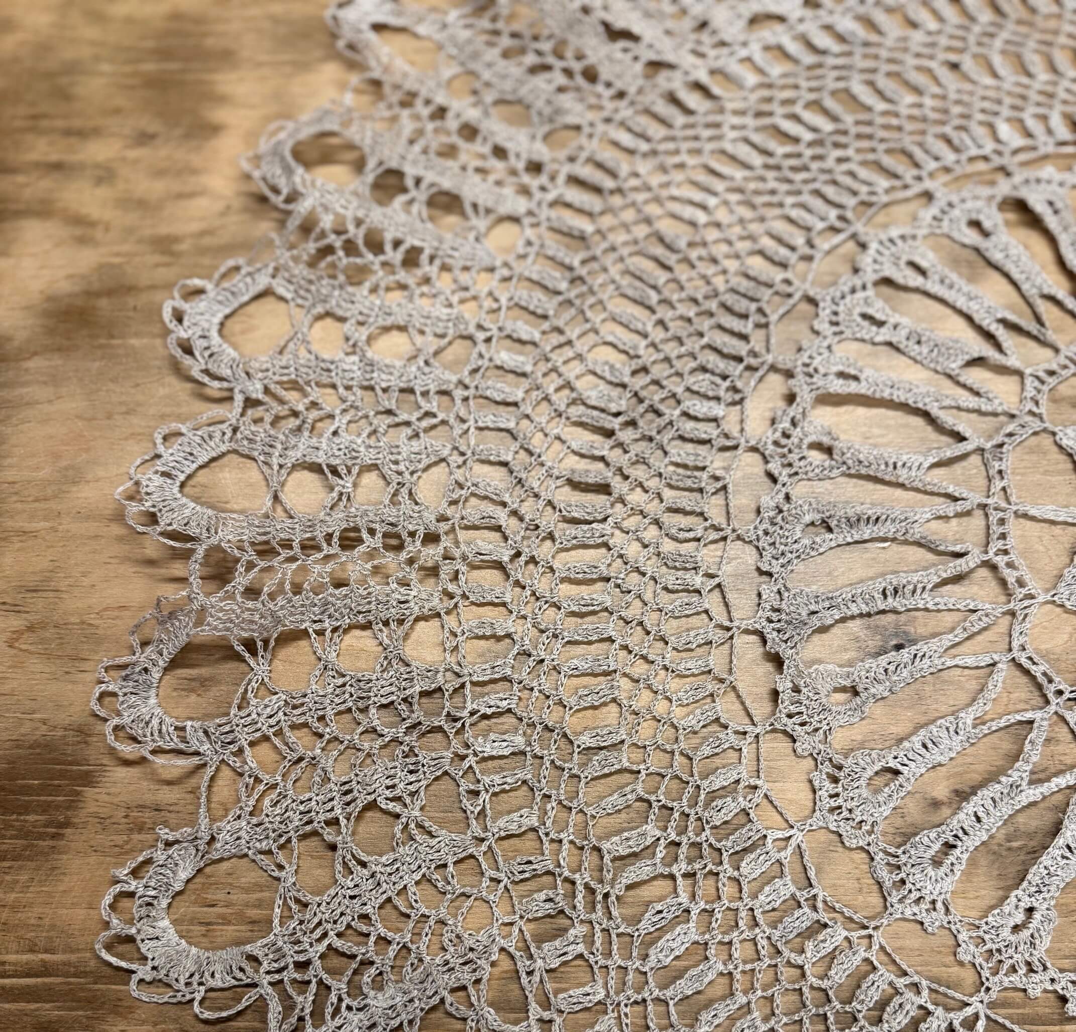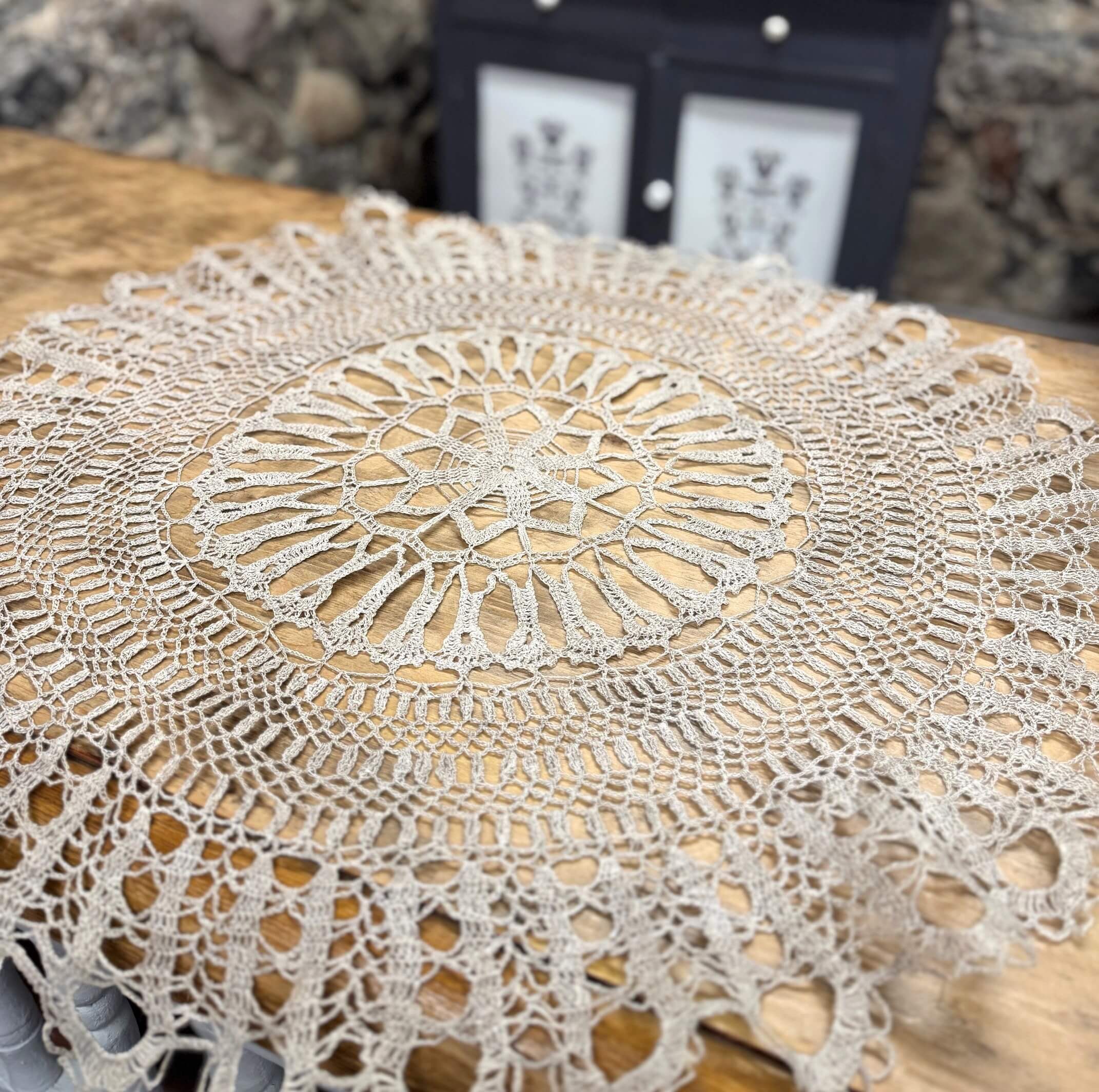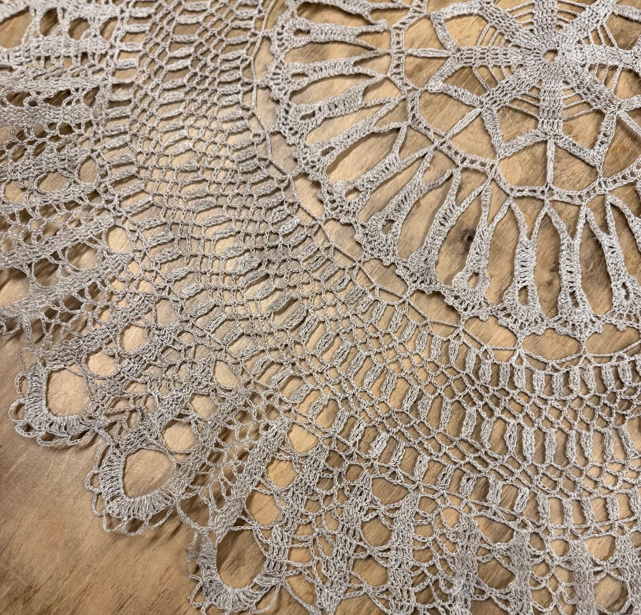 Apvali, 80 cm diametro, nerta iš 100% lininių siūlų.