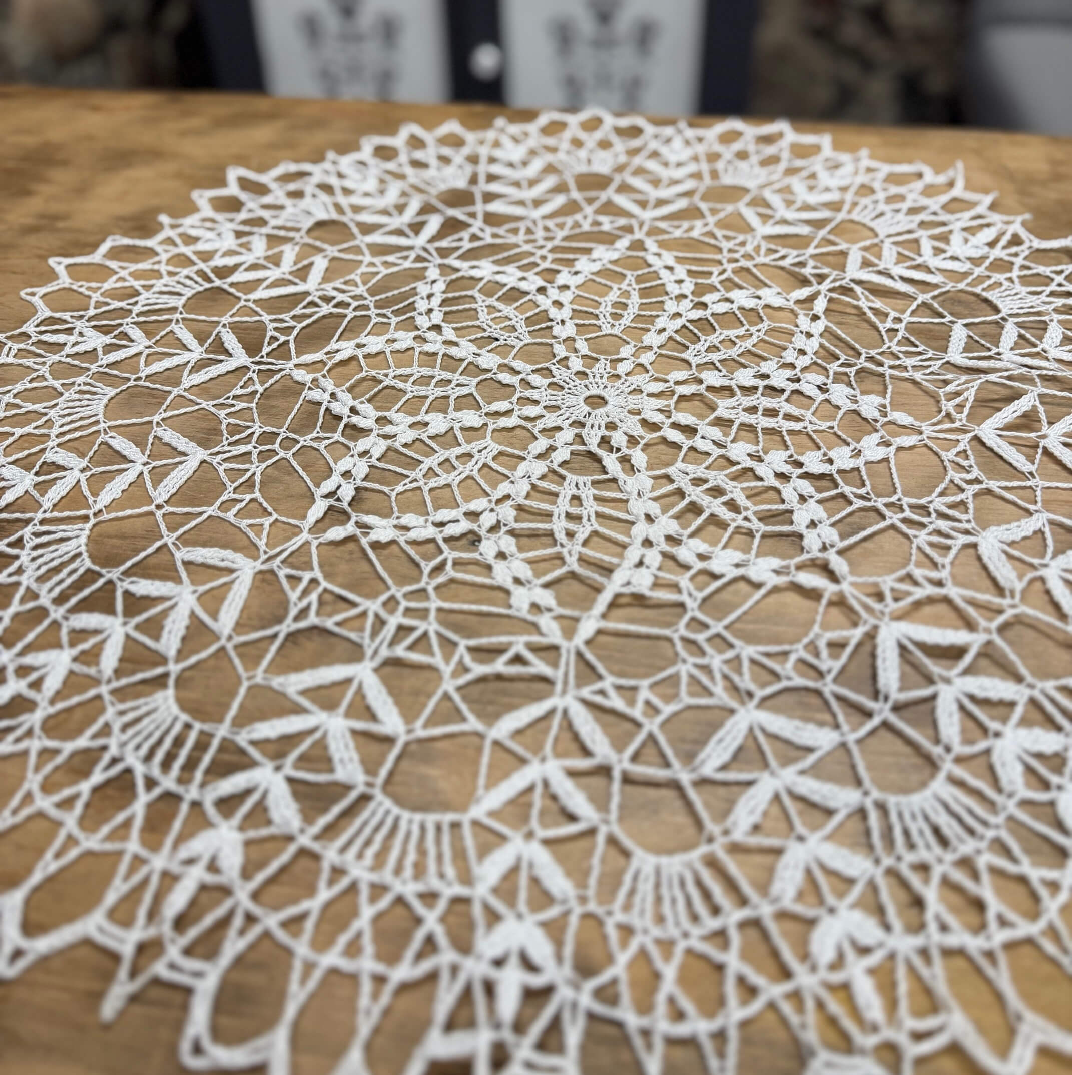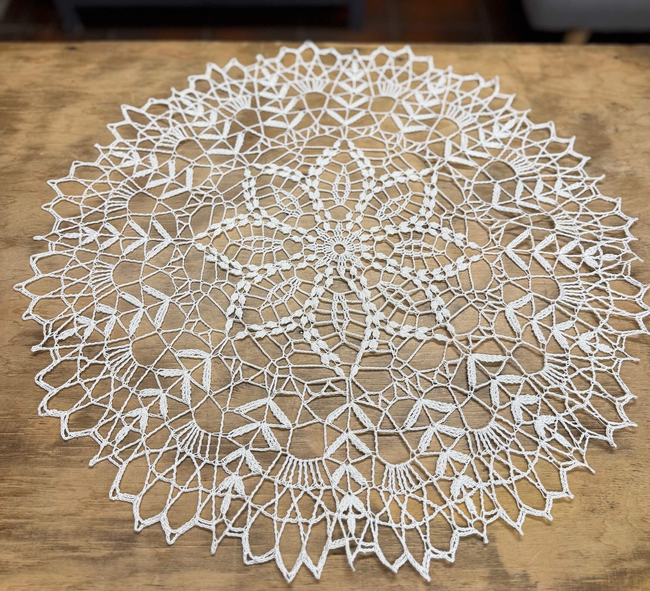 Rankomis nerta staltiesė.Apvali, 60 cm diametro, nerta iš 100% medvilninių siūlų.Kiekvienų namų interjero puošmena.